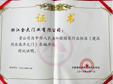 金大門業(yè)參加國家標準《建筑用單元門通用技術條件》制定單位