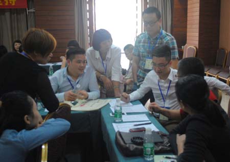經過了一天的基礎知識培訓,便來到了重頭戲——技能知識培訓《銷售流程及演練》、《促銷成功要點》。侯總與廖經理聲情并茂地為學員講解各種銷售中出現的問題以及相應的解決方案,與學員共同進行場景演示,從情境中理解吸收,同時更毫不保留的將自己畢生的銷售經驗分享給大家。經過了此次培訓,相信接下來的五一狂潮,名禾人將有更大的信心將它拿下!