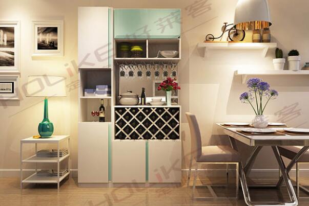 好萊客這款一字型直立式餐邊柜居于一側,內設棱形酒格,并騰出一定空間作酒杯存放,倒立姿態,玲瓏剔透。與家人圍坐在餐廳前吃著美食,聊著家常,何其溫馨!靜謐燈光下,是那一份難舍的溫情,更是難忘的美食。
