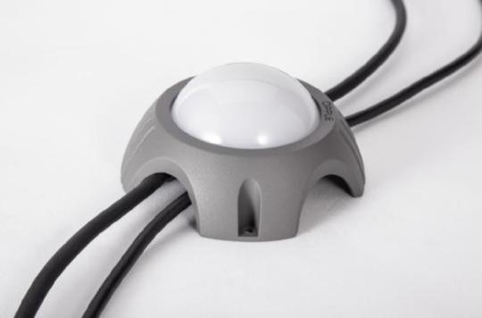 歐普商照LED全彩點光源軒爍產品采取SMD加亞克力罩設計,應用混光技術,發光均勻柔和。依照LED出光角及LED與面罩距離布局LED位置,無光亮點,抗紫外線材質保證了長久日曬不變色。