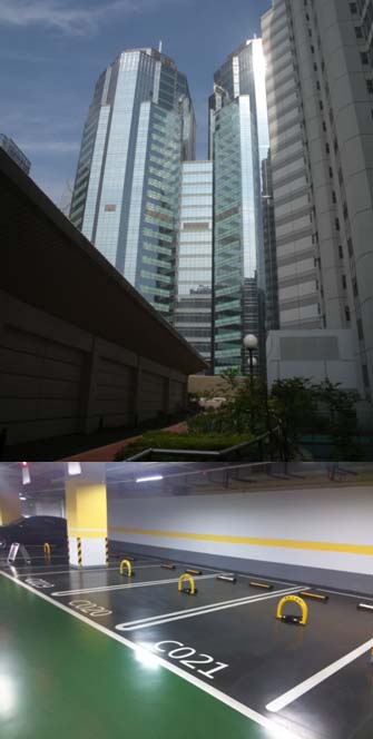(上)改造前的嘉里中心車庫(下)如今的嘉里中心車庫