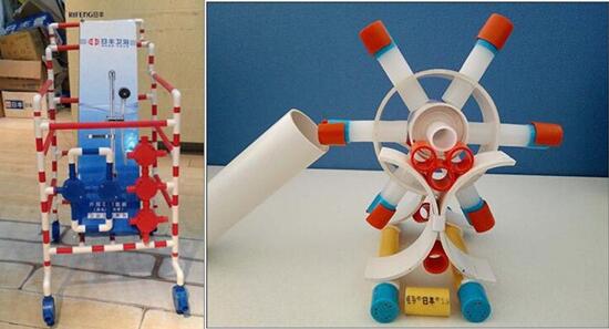 圖:利用日豐PPR管道、日豐PVC穿線管道、日豐PVC排水管道制作的購物車和風車