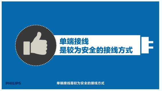 按照國際電工委員會標準,只有單端接線才是安全的LED燈管接線方式。對于廣大消費者最為關心的單端接線LED燈管的安裝問題,飛利浦照明售后工程師表示,其實安裝單端接線方式的LED燈管并沒有想象中那么復雜。如果是新裝修安裝,直接插入安裝就可以。如果是替換原有的熒光燈管,需要重新布線,對于有資質的電工來說,布線也并不復雜。