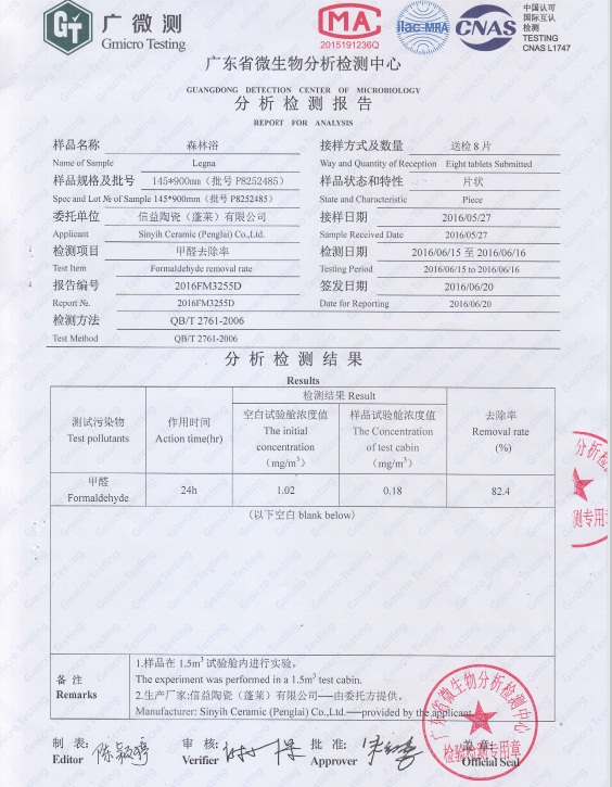 房屋裝修后,甲醛殘留有著強(qiáng)烈的致癌性,會引發(fā)多種疾病,甚至使人患上白血病,尤其在冬日,封閉的空間和溫暖的環(huán)境,會加速甲醛等有害物質(zhì)的釋放,對家人的危害極大,而冠軍磁磚負(fù)離子專利產(chǎn)品可以有效消滅甲醛,經(jīng)權(quán)威機(jī)構(gòu)檢測,去除率可達(dá)到82.4%~84.3%。