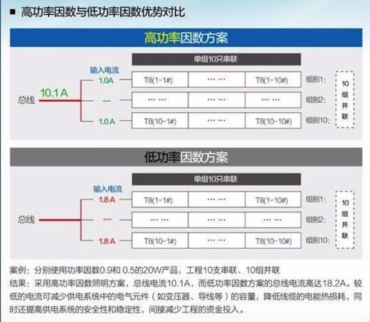 使用歐普商照LED T8燈管-“亮易Ⅲ”高功率因數照明方案,電網供電總線電流降低一半,進而減少供電系統中的電氣元件(如變壓器、電器設備、導線等)的容量。從而達到降低熱損耗,增強系統安全性,穩定供電電壓,間接減少投資費用。