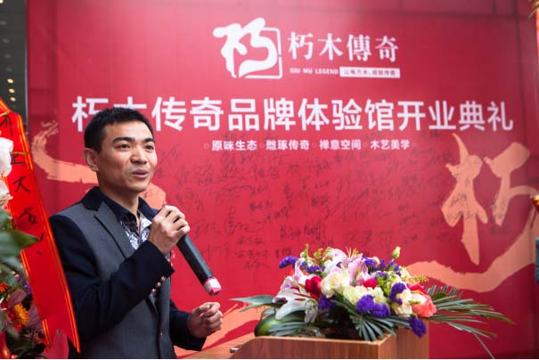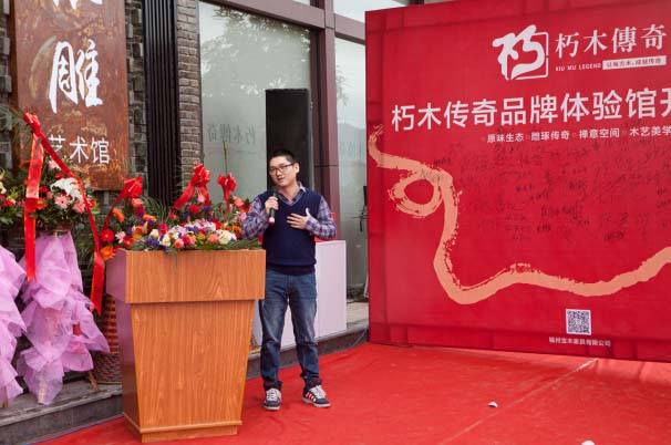 其后,鼓歌工藝董事長陳奮先生上臺致辭。陳先生目睹朽木傳奇今日的成就,不禁回憶起朽木傳奇創業的最初,千般感觸,千言萬語,化成一句“祝朽木傳奇開業大吉”這是他對朽木傳奇的熱切祝賀,也是他對朽木傳奇的殷切祝福。