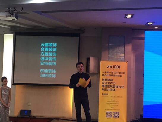 2017年1月9日下午,一千零一藝(ART1001)于蘇州在水一方大酒店開展核心伙伴項目對接會,吸引了300多家合作伙伴、20多家意向城市運營商的熱情參與。蘇州綠色裝飾協會副會長范惠芬、蘇州裝飾協會副會長張繼彪、蘇州設計協會秘書長張林、六安裝飾協會會長張有權等作為嘉賓出席,多家媒體對其進行現場報道。會議現場氣氛熱烈,各家合作伙伴做出了非常積極的反響。