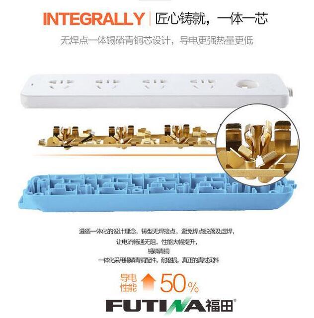 排插接線板內(nèi)部結構千萬不能忽略,家長一定要選擇銅件一體化的。原因何在?由于市面上的71%的排插產(chǎn)品內(nèi)部結構:銅線+銅片,這種構造容易造成短路以及散熱性能差,同時用戶使用過程中,焊點處焊接不好溫度上升快,如果有接觸不良,那就更容易產(chǎn)生電火花和短路隱患,從而導致火災的發(fā)生。而福田安全插座一體化的銅件的優(yōu)點是避免虛焊、接觸不良,同時導電性強、發(fā)熱量低,杜絕安全隱患。