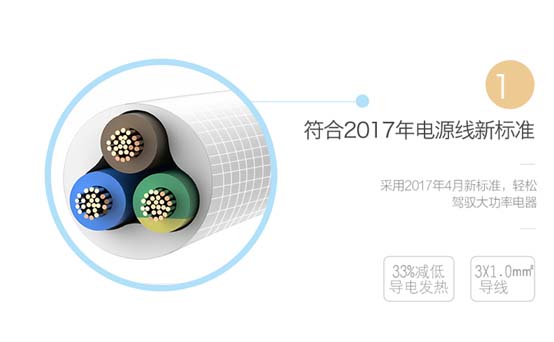 3、查看線材,新國標特別將線材的規格做了提高,10A插座延長線線芯不得小于1.0mm²,消費者可查看排插外包裝是否對延長線線芯規格作了說明,或者直接看延長線的文字標識。