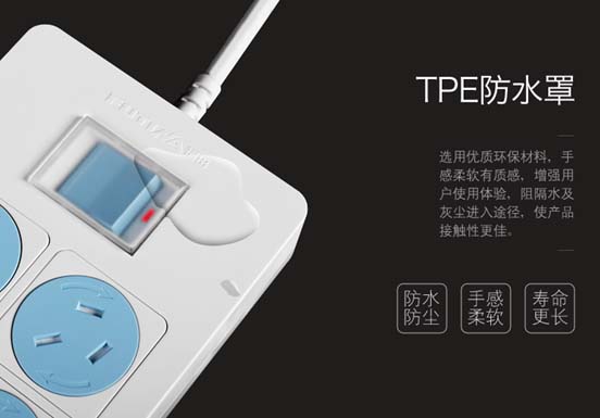 我們所說的給電源帶上一個保護罩并不是在電源上加一層保護膜,而是使用防濺水的排插。為什么要使用防濺水排插呢?相信大家在日常使用的工作桌上除了電腦以外還有各種電子設備在使用,必須要配備排插輔助。對于年輕人來說,最喜歡就是把零食和飲料放在電子設備隔離,但總是不注意就把飲料、水杯打翻了,造成滿桌子的水。如果水流到電器里邊或者濺到電源里,很容易就會造成危險。在這個時候,我們需要用一個防濺水插座來解決這個問題。