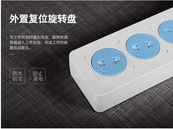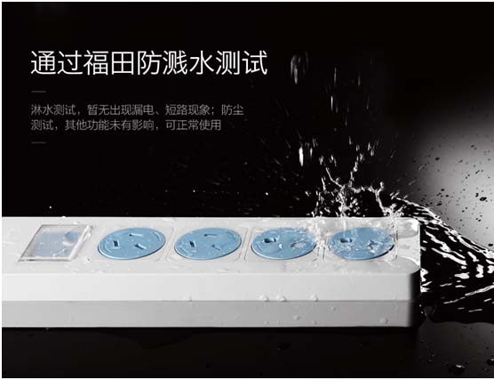 除了以上的功能以外,福田防濺水插座最基本的:內置保護門、使用高溫阻燃材料、大間距插孔等都已配置完善,符合新國標標準,各位消費者通過深入了解以后可以放心購買。
