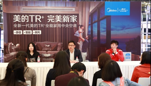 美的集團(tuán)中央空調(diào)事業(yè)部國內(nèi)市場部部長黃國強,跳水奧運冠軍林躍、知名設(shè)計師王鳳波接受媒體采訪