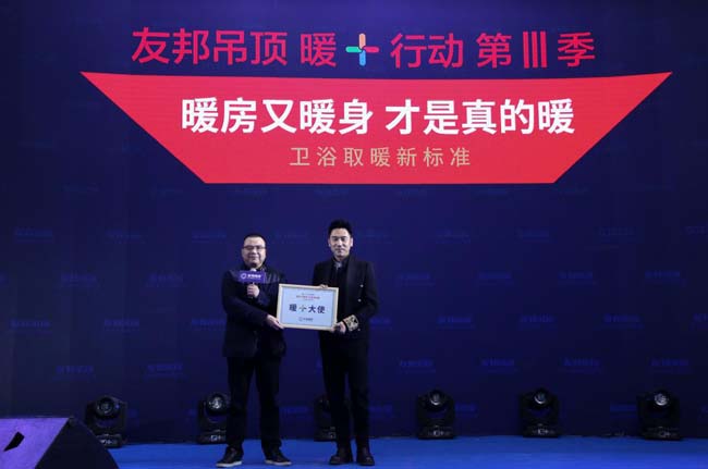 活動中,何潔與林依輪分別被授予友邦吊頂"暖+大使"的榮譽,他們將和友邦吊頂一起,將暖心生活主張傳遞給每一個家庭、每一位用戶,以實力為暖家新主張證言。
