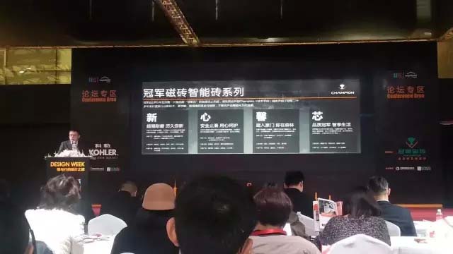 在致辭中,林總為中外設計師朋友講解了冠軍磁磚智能產品。冠軍自創立45年來,始終非常注重產品開發和創新。