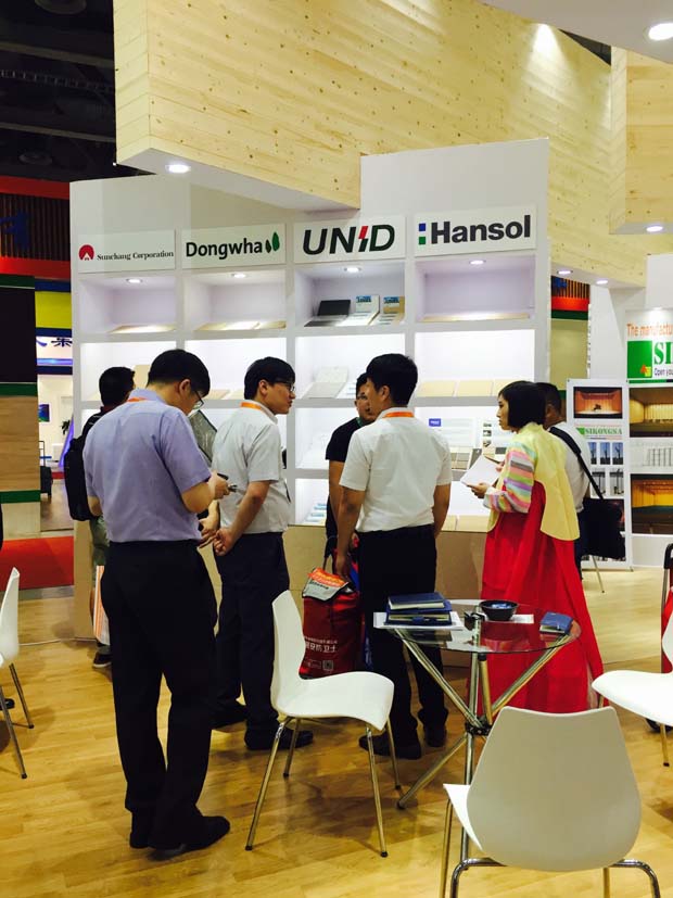 此次博覽會(huì)有Sunchang, Donghwa, Unid, Hansol, SunchangITS, 京敏產(chǎn)業(yè),Sikongsa等韓國(guó)優(yōu)秀的7家企業(yè)參加,并展示宣傳了優(yōu)質(zhì)的纖維板(MDF),地板 等韓國(guó)木制產(chǎn)品。