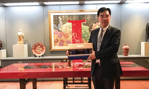 △2017年,華祥苑茶業董事長肖文華展示贈送給俄羅斯貴賓的國繽茶
