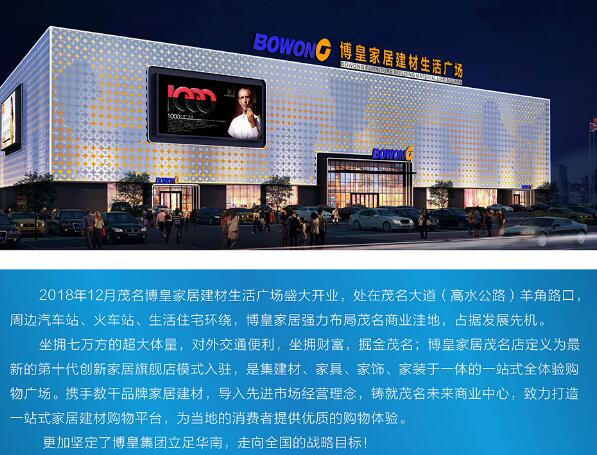 茂名博皇家居建材生活廣場   加入時間:2020-2-19 市場熱度:7528