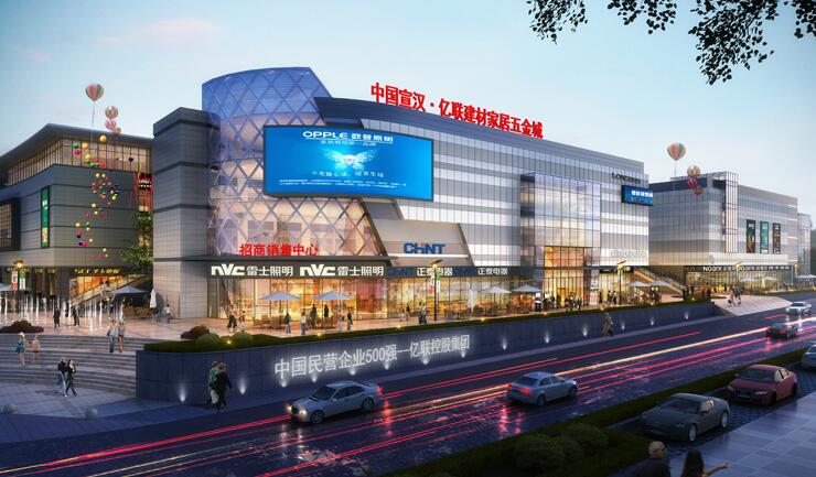 宣漢億聯建材家居五金城以“立足宣漢,服務達州,輻射秦巴”為目標,按照“高起點規劃、高標準設計、高水平建設、高品位經營”的要求,建成涵蓋裝飾建材、家居家具、五金機電、汽摩配件、農用機具等五大業態,集商品展示、零售、批發、體驗購物、電子商務、三方物流、休閑美食娛樂、商務辦公、星級酒店、結算與信息服務中心為一體的綜合性、多功能、現代化、大規模的新概念商貿物流中心。