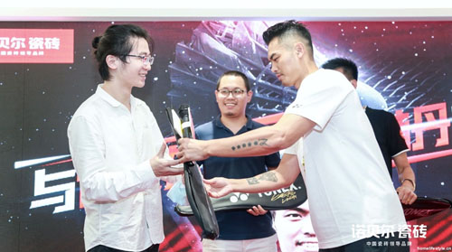 現(xiàn)場,林丹參觀了1.6*4.8米超大巖板及其他規(guī)格巖板專屬定制的產(chǎn)品,并以球會友進(jìn)行互動,還為諾貝爾忠實(shí)用戶佩戴“家庭體驗(yàn)官”徽章,將“家庭體驗(yàn)官”所秉持的“精益求精、追求更好”精神從線上傳遞至線下,讓消費(fèi)者充分感受了到諾貝爾瓷磚的理念。